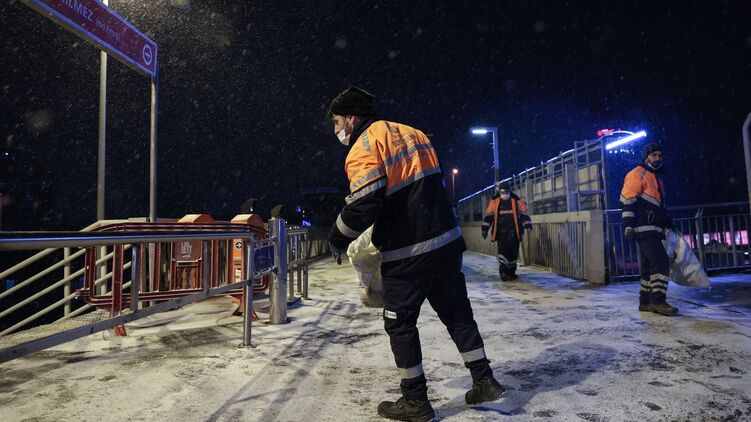 Очень сильный снегопад обрушился на Стамбул, самый густонаселенный город Турции.