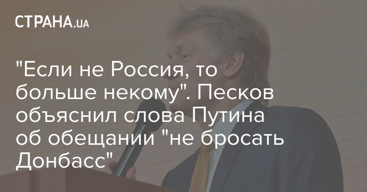 "Если не Россия, то больше некому". Песков объяснил слова Путина об обещании "не бросать Донбасс"