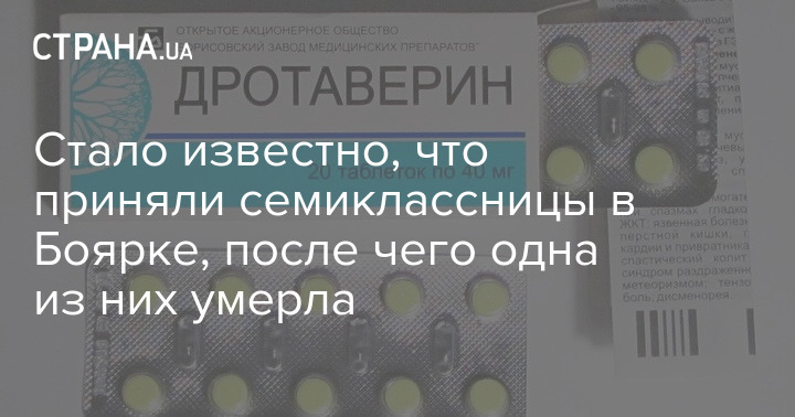 Стало известно, что две школьницы академического лицея "Гармония", который находится в Боярке, Киевской области, приняли большое количество медпрепарата Дротаверин, в результате одна из них скончалась, а вторая попала в больницу с отравлением.