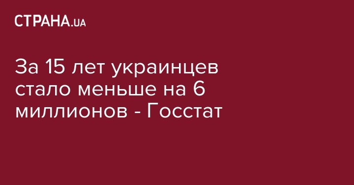 По данным Всеукраинской переписи населения, проведенной в декабре 2001 года, численность населения Украины тогда составляла 48, 415 млн человек. То есть за 15 лет население Украины уменьшилось почти на 6 миллионов.