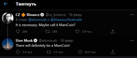 При этом Маску предложили назвать ее Марскоином. "Это определенно будет Марскоин!", — ответил он.