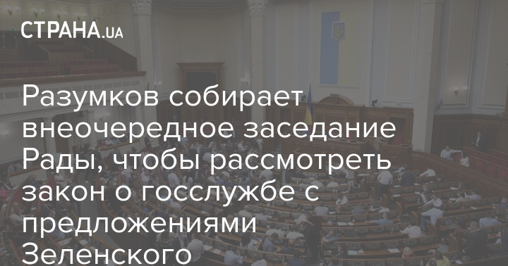 "Созвать внеочередное пленарное заседание Верховной Рады Украины девятого созыва на 12:00 23 февраля 2021 года, на котором рассмотреть закон Украины о внесении изменений в некоторые законы Украины относительно возобновления проведения конкурсов на занятие должностей государственной службы и других вопросов государственной службы с предложениями президента Украины от 18 февраля 2021 года (№4531)", - говорится в сообщении