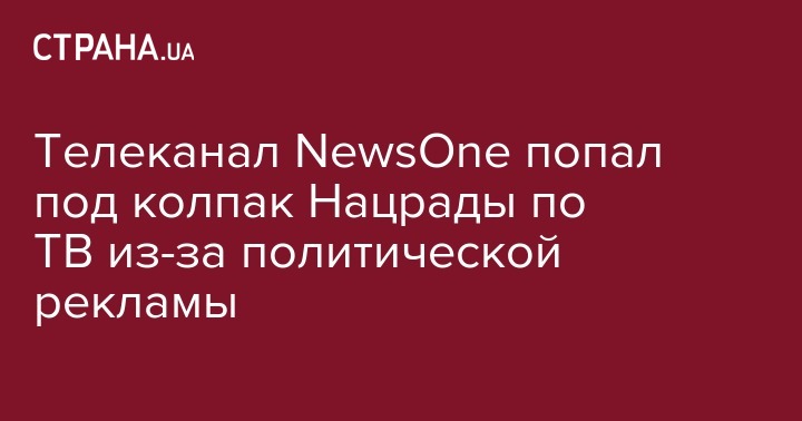 Национальный совет по ТВ и радиовещанию назначил внеплановую проверку телеканала NewsOne из-за трансляции рекламы одной из политических партий, что противоречит действующим законодательным нормам. Об этом сообщает ТСН, со ссылкой на пресс-службу Нацсовета по телевидению и радиовещанию.
