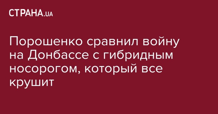 По словам главы государства, "гибридный носорог, который бегает по нашим улицам... разрушает все вокруг: ценности, принципы, демократию". "Мы дискутируем, откуда взялся тот носорог, он хороший или плохой. Мы это делаем, вместо того, чтобы сплотиться и сказать, что носорог нам не нужен и нас в носорогов не обратишь", - сказал Порошенко.