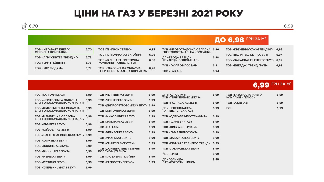 Большинство компаний выставили предельно возможный ценник на март - 6,99 грн. При этом некоторые определили более низкий тариф.
