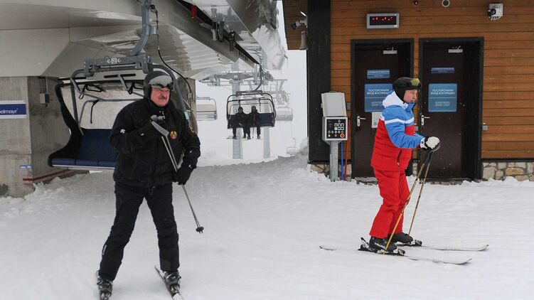 Президент России Владимир Путин и его белорусский коллега Александр Лукашенко покатались на лыжах на курорте Красная поляна в Сочи.