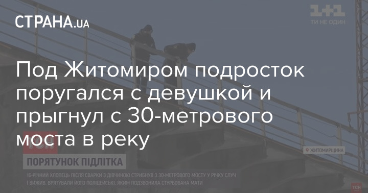 В Житомирской области 16-летний подросток поругался с девушкой и прыгнул в реку с 30-метрового моста. Парню удалось выжить.