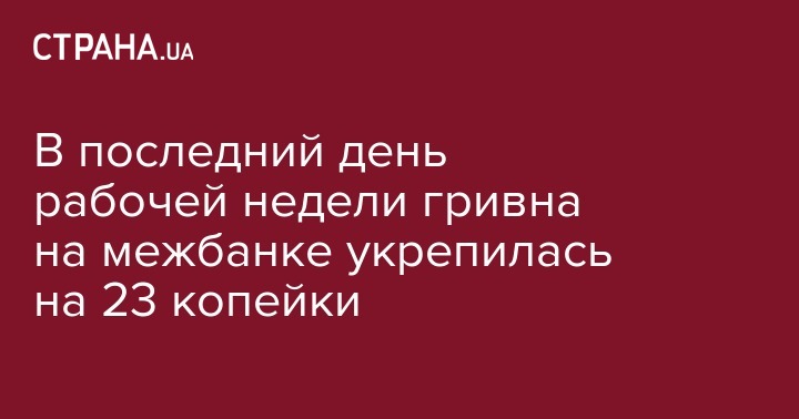В последний день рабочей недели гривна на межбанке укрепилась на 23 копейки