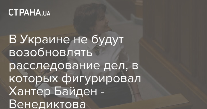 В Украине не планируют возобновлять расследования закрытых дел, в которых фигурирует сын президента США Хантер Байден. Генпрокурор Ирина Венедиктова заявила, что они касаются не юридической системы, а геополитики.