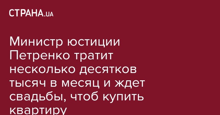 Министр юстиции Петренко тратит несколько десятков тысяч в месяц и ждет свадьбы, чтоб купить квартиру