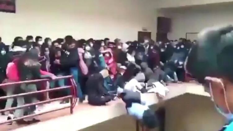Появилось видео, как в Боливии студенты рухнули с четвертого этажа после давки на собрании. Видео