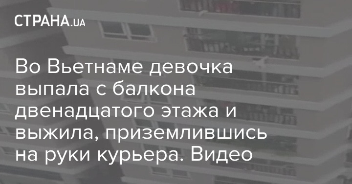 Во Вьетнаме девочка выпала с балкона двенадцатого этажа и выжила, приземлившись на руки курьера. Видео