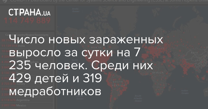Число новых зараженных выросло за сутки на 7 235 человек. Среди них 429 детей и 319 медработников