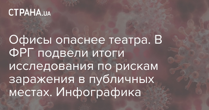В Германии опубликовали итоги исследования немецких ученых из Берлинского технического университета об угрозе заражения коронавирусом в различных публичных местах. Результаты получились довольно неожиданными. Как выяснилось, в разных помещениях - разные риски угрозы.