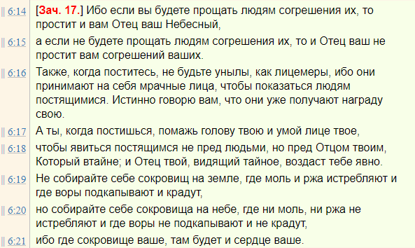 На Литургии читают отрывок Мф. 6:14-21, в котором Иисус Христос говорит о важности прощения.