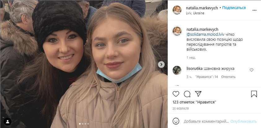 Она активно ведет свою страницу в Instagram, где не скрывает свои политические взгляды, называя себя "порохоботкой" и публикуя совместные фото с политиками - Софьей Федыной, Порошенко и его семьей, а также экс-спикером Рады Андреем Парубием.