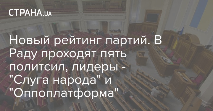 В случае, если бы выборы в Верховную Раду состоялись бы в ближайшее время, проходной барьер могли бы пройти пять партий. Лидируют среди них "Слуга народа" и "Оппзиционная платформа - За жизнь".