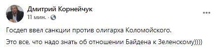 "Госдеп ввел санкции против олигарха Коломойского. Это все, что надо знать об отношении Байдена к Зеленскому" - прокомментировал политолог Дмитрий Корнейчук.