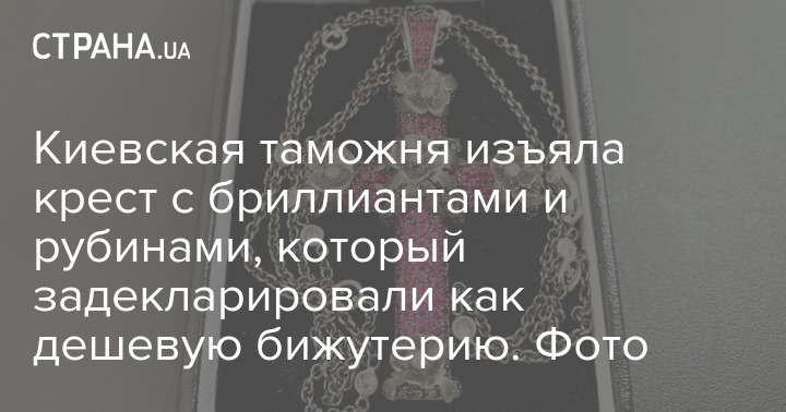 Киевские таможенники изъяли цепочку с крестиком, украшенные сотнями бриллиантов и рубинов, которую задекларировали как б/у бижутерию стоимостью чуть больше двух тысяч гривен. При этом реальная стоимость ювелирного изделия составляет более 160 тысяч гривен.