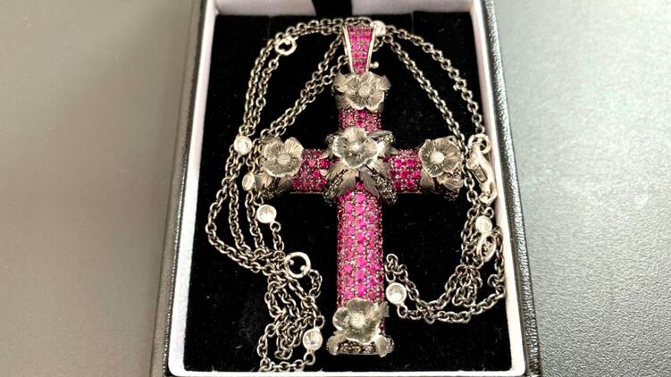 Киевская таможня изъяла крест с бриллиантами и рубинами, который задекларировали как дешевую бижутерию. Фото: Гостаможня