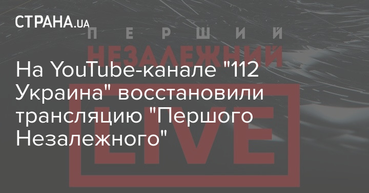 На YouTube-канале "112 Украина" восстановлена трансляция канала "Перший незалежний". Ранее вечером видеосервис заблокировал онлайн-трансляцию эфира канала "112 Украина".