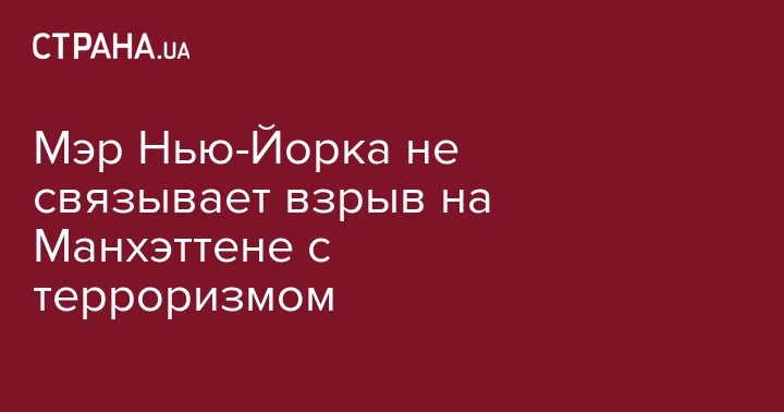 Мэр Нью-Йорка Билл де Блазио не связывает взрыв  на Манхэттене с терроризмом, однако называет инцидент "преднамеренным действием". Об этом передает CNN.