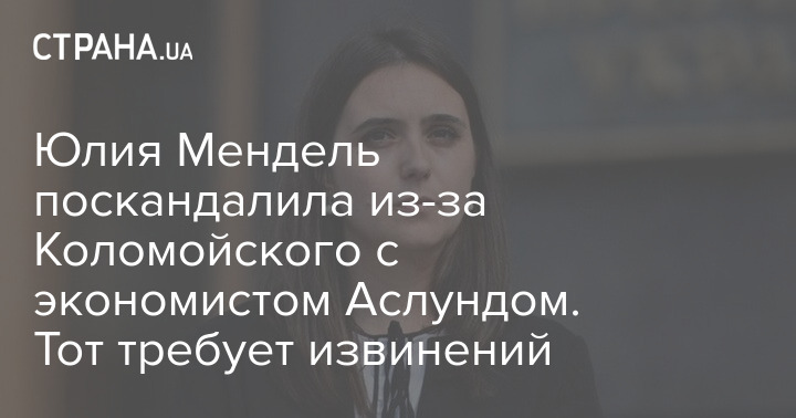Пресс-секретарь президента Украины Юлия Мендель поругалась в сети со экономистом и старшим научным сотрудником Atlantic Council Андерсом Аслундом из-за статьи о том, что Владимир Зеленский готов бросить вызов любому олигарху. Теперь Аслунд требует извинений.