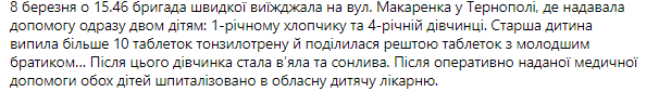 В Тернополе четырехлетняя девочка отравилась таблетками сама и дала их своему годовалому брату
