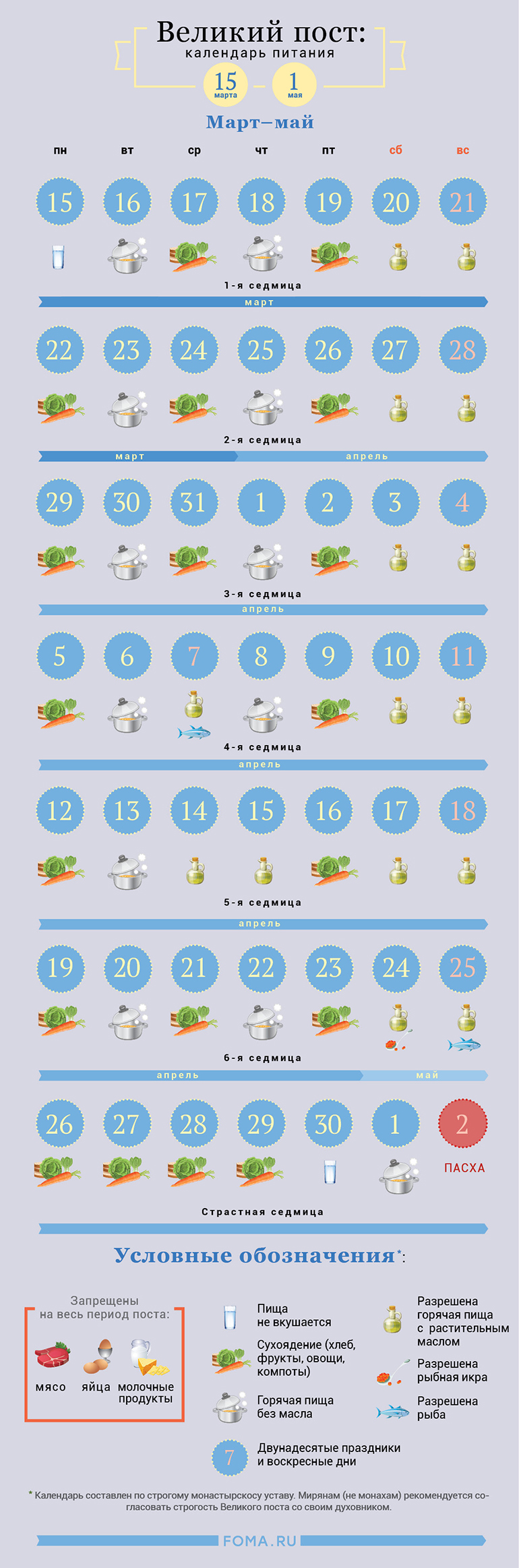 Великий пост: календарь питания. Фото: Фома