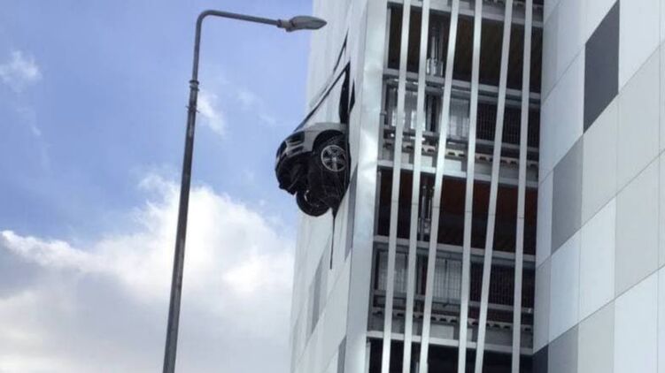 Хоккеист на Porsche пробил стену и едва не вылетел с третьего этажа паркинга вместе с женой и ребенком. Фото