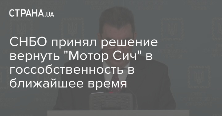 "Речь идет о предприятии "Мотор-Сич " в Запорожье. На сегодняшний день принято соответствующее решение. Согласно этому решению, предприятие "Мотор-Сич" будет возвращено украинскому народу, будет возвращено в собственность украинского государства законным, конституционным способом в ближайшее время", - сказал Данилов.