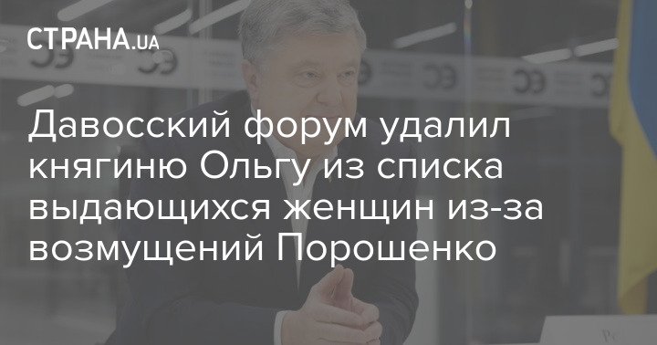 Всемирный экономический форум, которой проводится в швейцарском Давосе, решил удалить со своего сайта информацию о княгине Ольге, которую он включил в список выдающихся женщин, сформировавших мир, после возмущений по этом поводу экс-президента Украины Петра Порошенко.