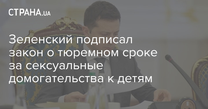 Президент Украины Владимир Зеленский подписал закон, касающийся имплементации Конвенции Совета Европы о защите детей от сексуальной эксплуатации и сексуального насилия. Он был принят Верховной Радой 18 февраля этого года и предполагает  лишение свободы за действия сексуального характера с детьми.