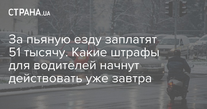 За нетрезвое вождение будут  штрафовать от 17 до 51 тысячи гривен (было 10,2 тысячи) с лишением права управления транспортными средствами сроком на один год.