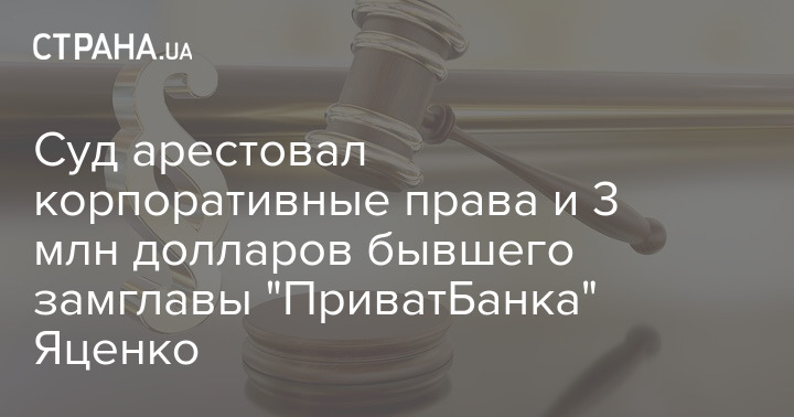 Апелляционная палата Высшего антикоррупционного суда наложила арест на 3 млн долларов бывшего первого заместителя главы правления "Приватбанка" Владимира Яценко, а также на 1/2 часть долей корпоративных прав, которые принадлежат его гражданской жене.