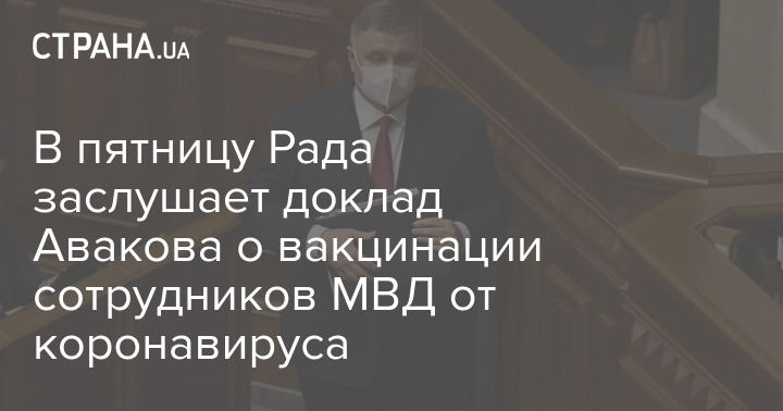 В пятницу, 19 марта, в Верховной Раде заслушают министра внутренних дел Арсена Авакова касательно вакцинации сотрудников МВД от коронавирусной болезни.