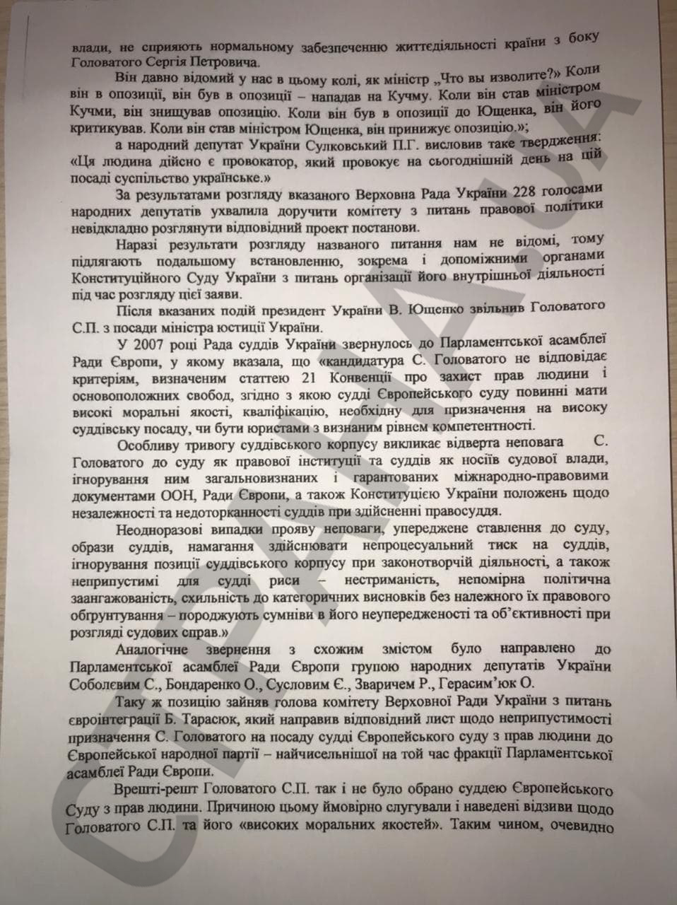 В тоже время Головатый был в числе депутатов, голосовавших за Харьковские соглашения в 2010 году. Именно это и стало одним из формальных оснований, чтоб поставить вопрос о соответствии его занимаемой должности.