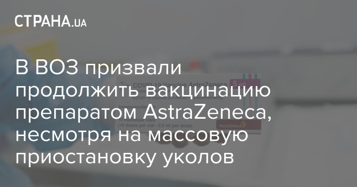 "На данный момент ВОЗ считает, что соотношение риска и пользы смещается в пользу вакцины AstraZeneca, и рекомендует продолжить вакцинацию", - говорится в пресс-релизе ВОЗ.