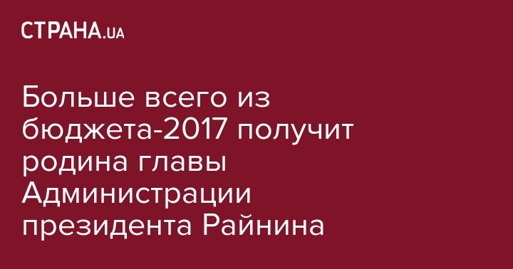 Больше всего из бюджета-2017 получит родина главы Администрации президента Райнина