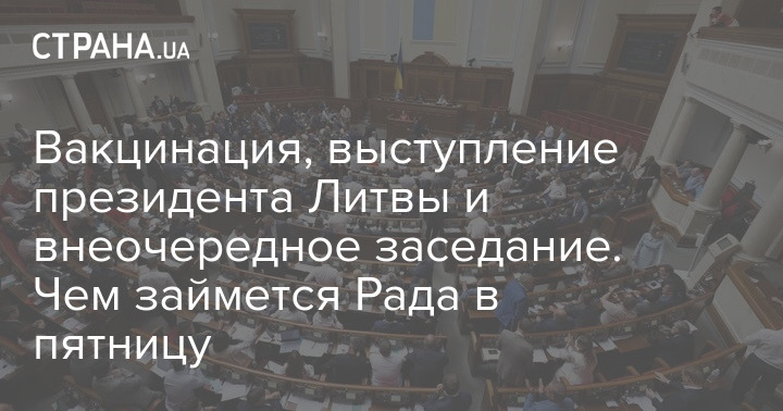 Вакцинация, выступление президента Литвы и внеочередное заседание. Чем займется Рада в пятницу