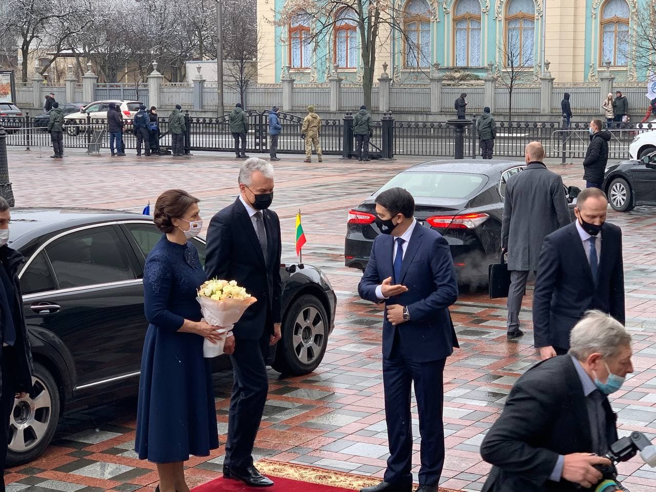 Спикер ВР Дмитрий Разумков встретил президента Литовской Республики Гитанаса Науседы у входа в парламент.