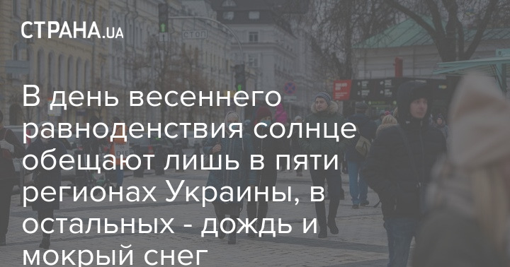 В субботу, в день весеннего равноденствия, 20 марта, на большей части Украины снова будет пасмурно и местами дождливо. Сухая и солнечная погода ожидается лишь в Закарпатье, Ровенской, Тернопольской, Хмельницкой и Черновицкой областях. Ветер северо-западный 5-10 метров в секунду.