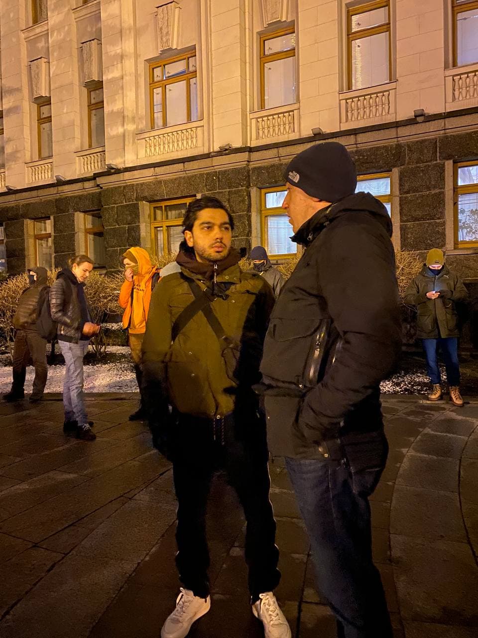 19:20 На акцию протеста приехал адвокат Стерненко Маси Найем и депутат от партии Голос Роман Лозинский.