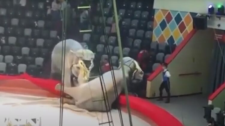 В Татарстане произошло ЧП во время циркового представления со слонами. В какой-то момент одно из животных напало на своего "напарника".