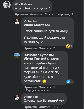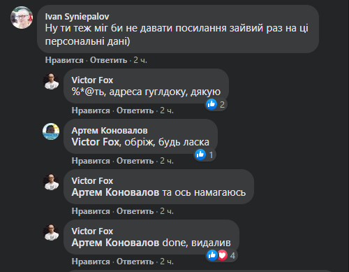 Примечательно, но к распространению личных данных поучаствовал и сам Виктор, не обрезав ссылку на исходный документ с данными пользователей. К счастью, в комментариях ему об этом подсказали и он оперативно внес правки в пост.