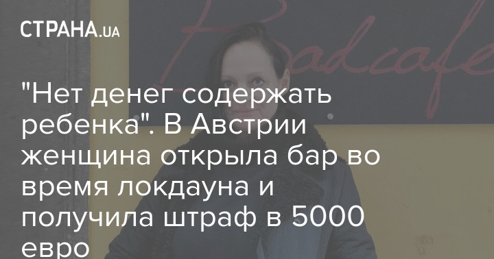 В Австрийском городе Линце, 11 января, во время жесткого карантина в стране, Александра Первулеско открыла свой бар, при чем объявила о своем намерении в СМИ. Теперь владелице заведения присудили штраф в размере 5 тысяч евро (около 165 тысяч гривень).
