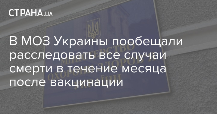 Министерство здравоохранения Украины намерено расследовать случаи смерти людей, скончавшихся в течение 30 дней после вакцинации от коронавируса.