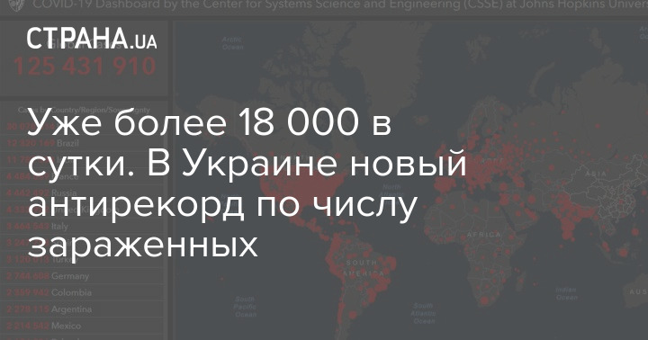 Предыдущий был отмечен в Украине вчера, 25 марта, когда в стране было выявлено 16 669 новых случаев заражений. Таким образом, по сравнению с предыдущим днем, число официально выявленных заболевших выросло на 1 463 человека. Умерло 326 человек.