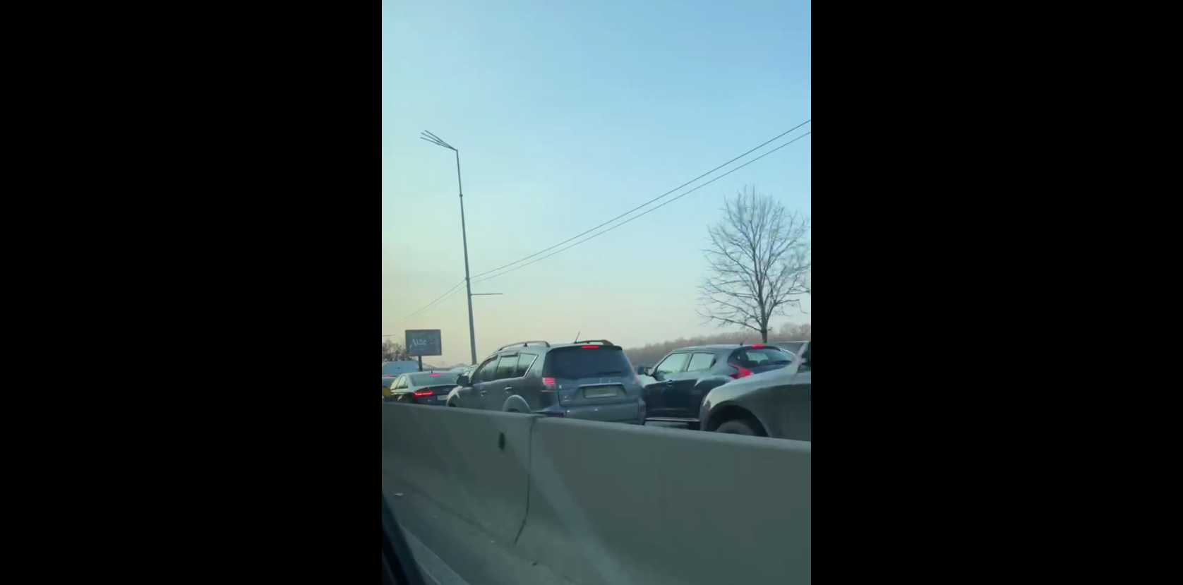 Из-за заблокированного ДТП дорожного движения возникла пробка. Многие водители вышли из машин "на перекур" из-за невозможности проехать.