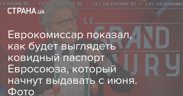 Еврокомиссар Тьерри Бретон, который ответственен за вакцины, заявил, что использование европейского сертификата здоровья, который начнет действовать с 15 июня, будет добровольным. Также он показал, как будет выглядеть этот документ.